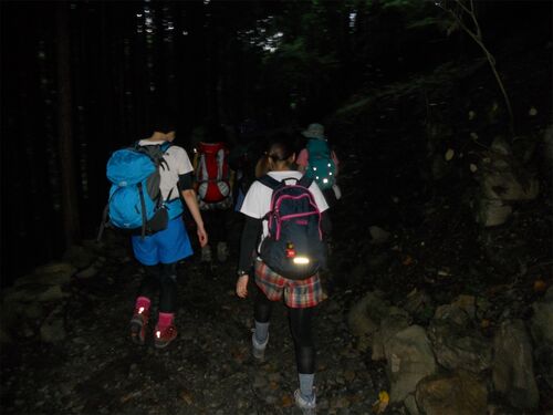 垂直の岩場があるとの事で乾徳山へ!SQUARE9名! 夜集合でピックアップ、朝4時半登り始め、まだ薄暗い↓ 単調でつまらないという噂の道をしばらく歩く↓ ん~ちょっと噂どおりです^^; 銀水晶?錦水晶?↓ 普通は水量そんなに無いらしいですが、雨が降ったことも…